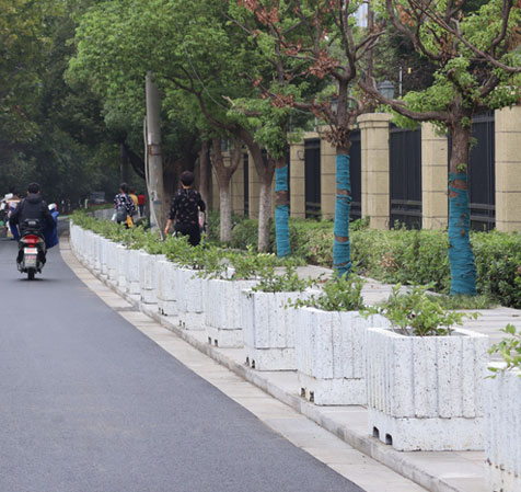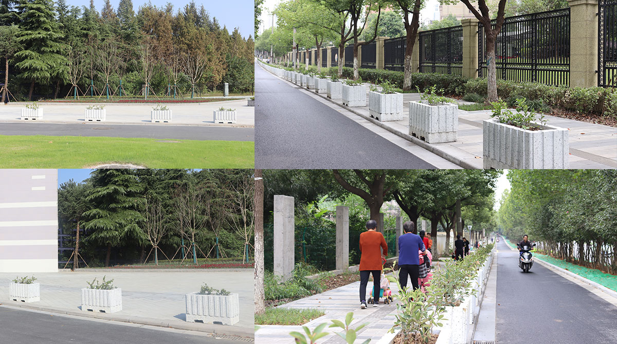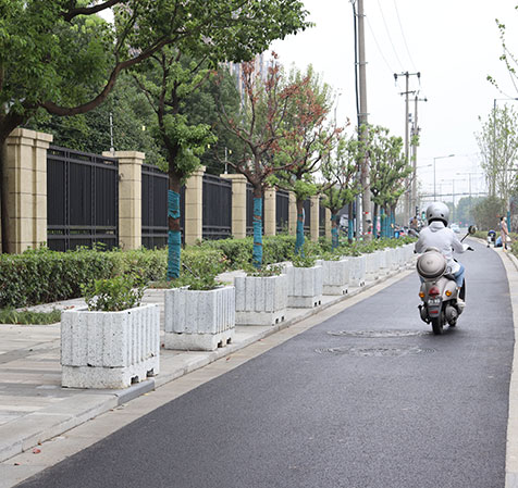 仿石材花箱式人行道隔離設(shè)施,不僅可防止車輛進(jìn)入人行道破壞人行道板磚和路側(cè)石等市政設(shè)施,而且花箱內(nèi)綠植又增加了道路綠化量,提升了道路的景觀性,達(dá)到了實(shí)用性與美觀性相結(jié)合的雙重效果。宏路仿石材花箱采用機(jī)壓式特殊制作工藝,比以往木質(zhì)、鐵質(zhì)、鋁質(zhì)、PVC等材質(zhì)的花箱,透氣性和透水性更好,植物生長更為旺盛。