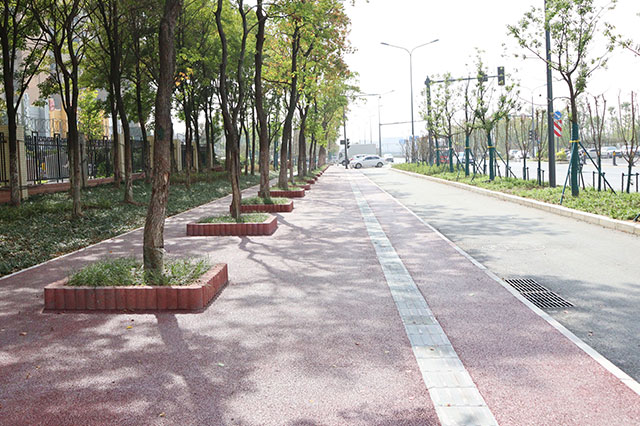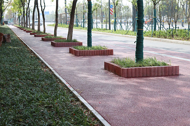 平樹(shù)池一般比鋪裝路面低一些,這樣有利于收集、消納路面雨水徑流,在一定程度上,增加了凈水與蓄水功能,提高了生態(tài)效益。樹(shù)池中精心配置的花草灌木及地被植物,不僅對(duì)樹(shù)木的生長(zhǎng)發(fā)育極為有利,還能增加城市綠化量,改善道路景觀。